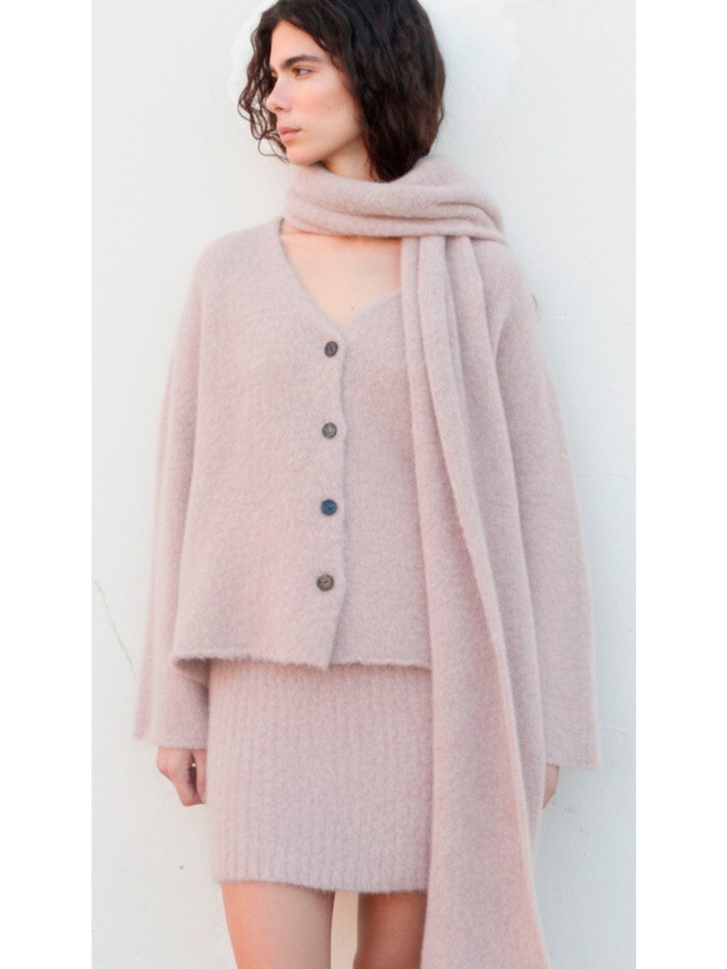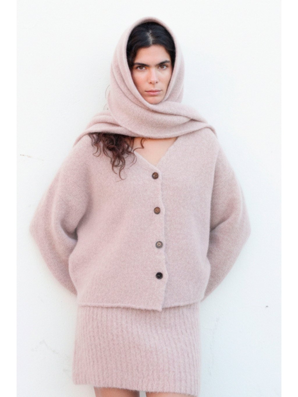 .blacktogrey vlněná sukně v odstínu Rose s příměsí alpacy. Krátká pletená sukně z jemného úpletu, který se krásně přizpůsobí postavě a zároveň drží tvar. Nosí se lehce a pohodlně, hřeje a je ideální pro vrstvení během chladnějších dní. Kratší délka vytváří zajímavý kontrast k texturovanému materiálu a dodává siluetě moderní, ženský tvar. Modelka měří 176 cm a má na sobě velikost S.
