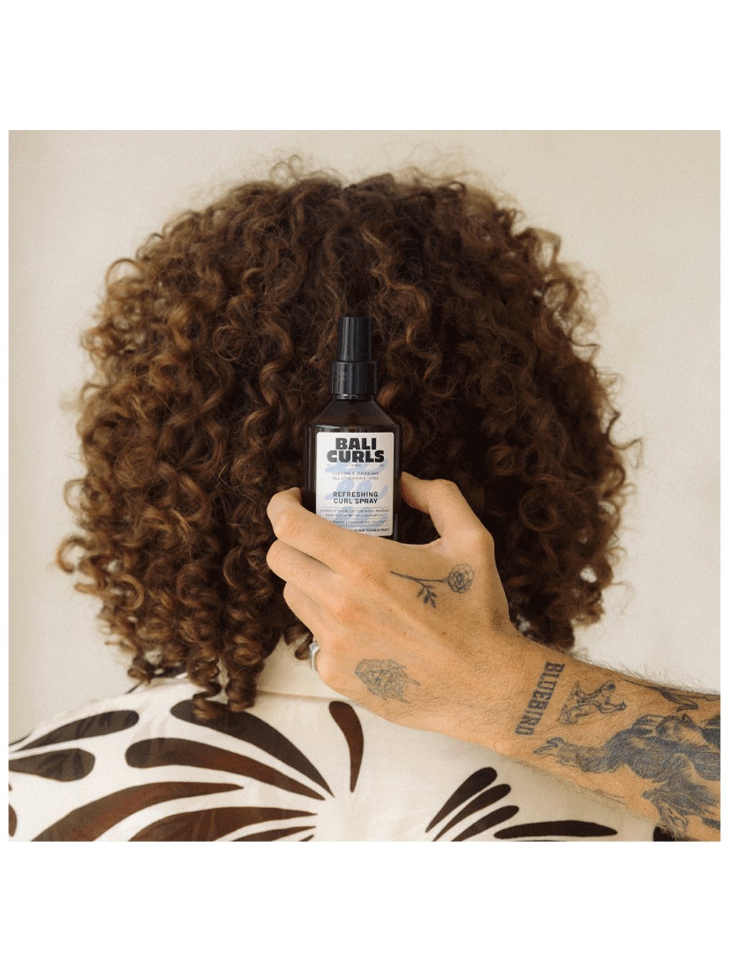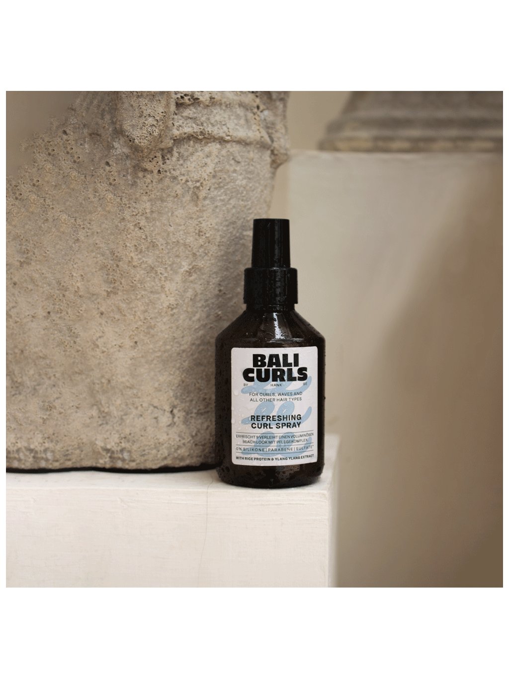 Bali Curls refresh sprej s rýžovým proteinem a ylang ylang. Obsahuje také mořskou sůl. Osvěžuje účes, dodává mu objem a definuje vaše kadeře další dny po mytí. Zároveň vlasy hydratuje a vyživuje. Aplikuje se na suché či vlhké vlasy kdykoliv je potřeba.