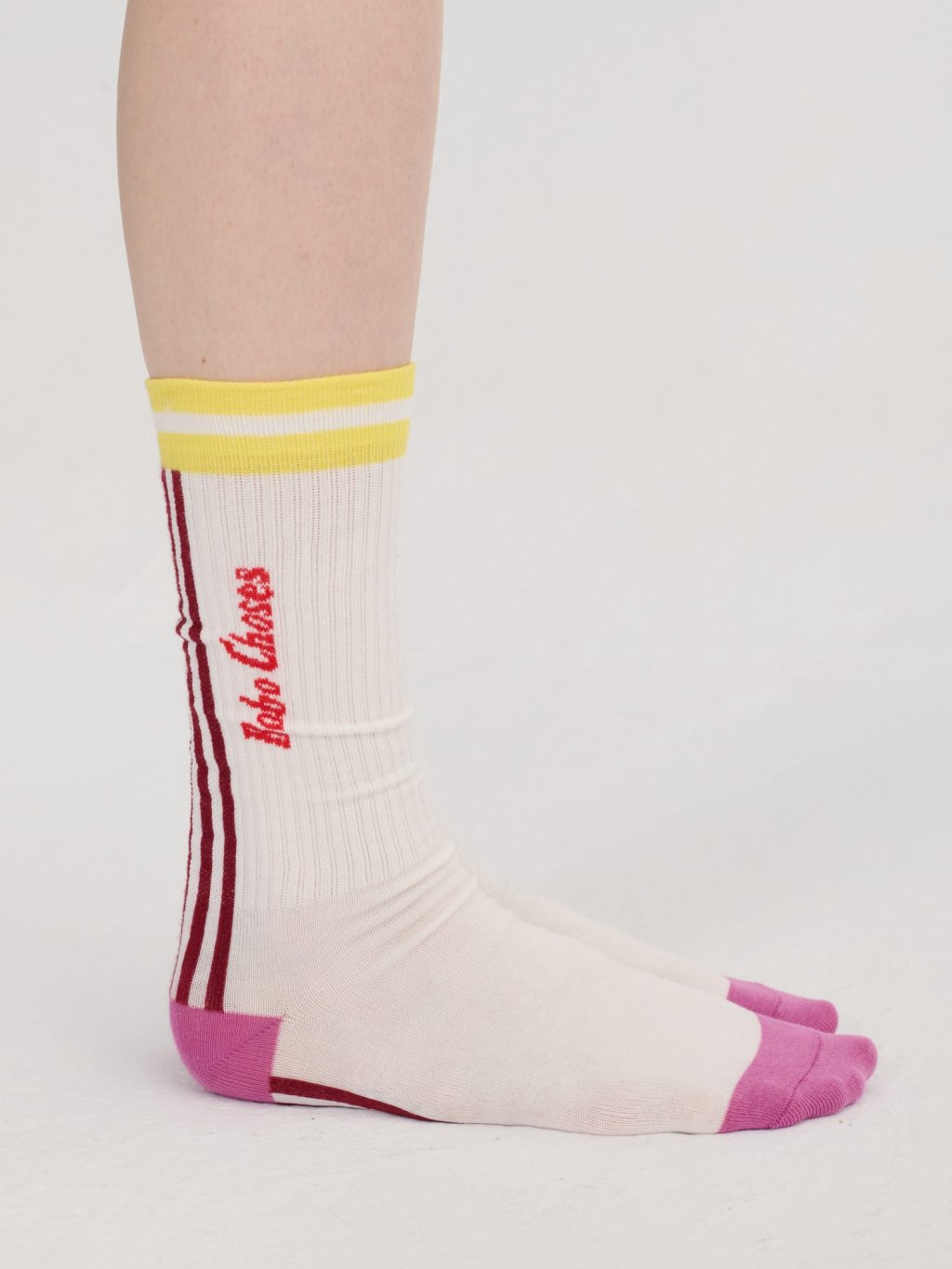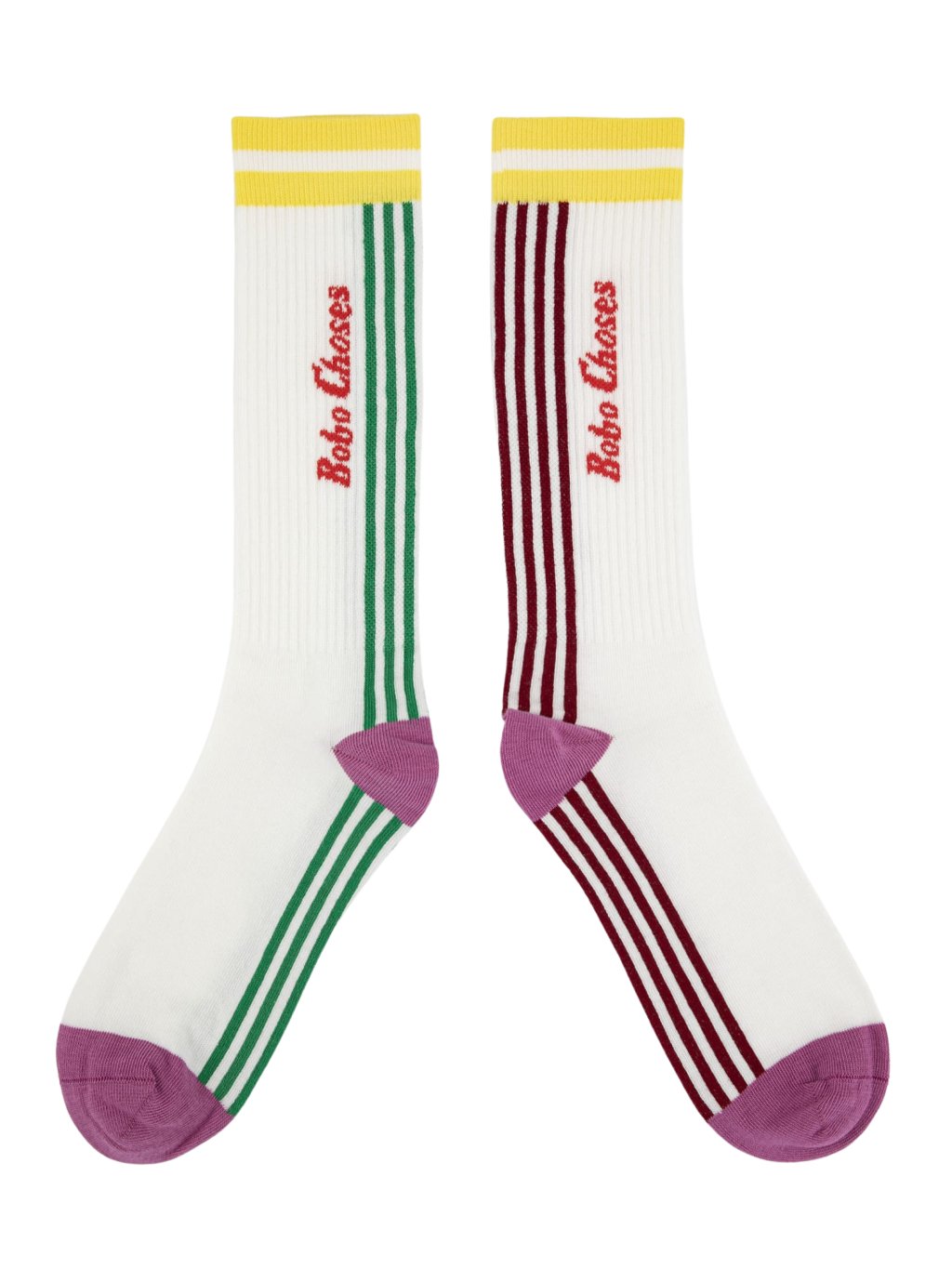 Bobo Choses dlouhé bavlněné ponožky, které rozzáří každý outfit. Žebrování, kontrastní pruhy a hravé barevné detaily. Ponožky jsou vyrobené ze směsi s 74 % organické bavlny, doplněné o polyamid a elastan pro pevnost a pohodlné nošení bez sklouzávání. Certifikace GOTS potvrzuje udržitelnou a etickou výrobu. Ideální do tenisek, mokasín i sandálů. Vyrobeno ve Španělsku.