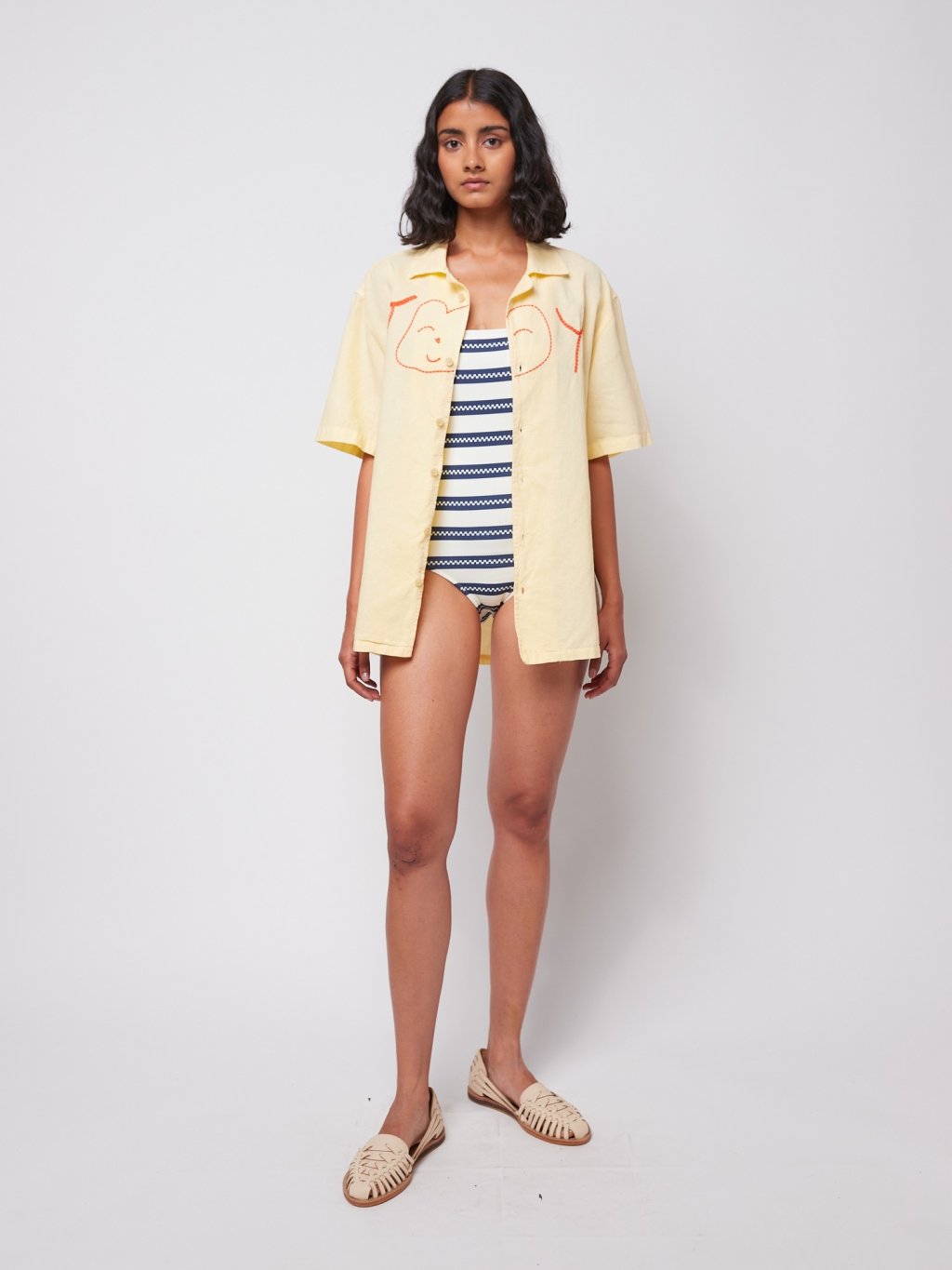 Bobo Choses unisexová košile volnějšího střihu s výšivkou. Příjemný materiál s příměsí lnu. Krásný, nadčasový kousek.