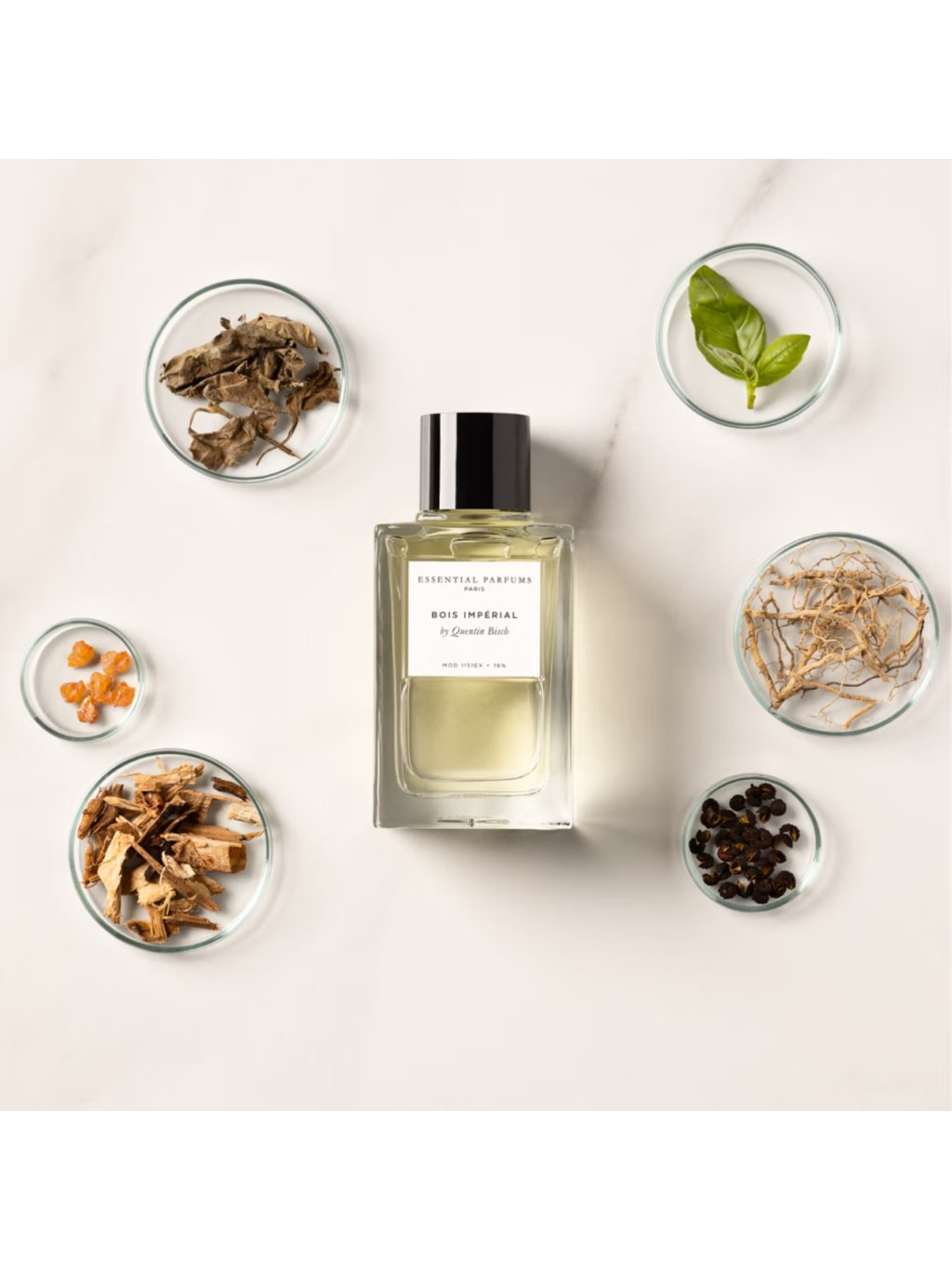 Essential Bois Impérial EDP nabízí vůni čerstvě drcené bazalky spolu s jiskřivou vůní pepře a grepu. Tato brilantní kombinace dokonale kontrastuje s výrazným dřevitým podpisem vůně. Vetiver z Haity se perfektně snoubí s výrazným tónem cedrového dřeva. Tato vibrující asociace je osvětlena sofistikovaným květinovým nádechem petalie. Finální podpis nabízí akigalové dřevo, jež je upcyklované z pačuli biotechnologickým procesem a jeho jedinečný kořenitě-dřevitý charakter umocňuje bohatý olej z pačuli. Essential Parfums pracují s certifikovanými a upcyklovanými přírodními látkami či se zelenou chemií a biotechnologií a vybírají ty nejkvalitnější a nejudržitelnější suroviny, které nejen přispívají k jedinečnosti vůně, ale také respektují životní prostředí.