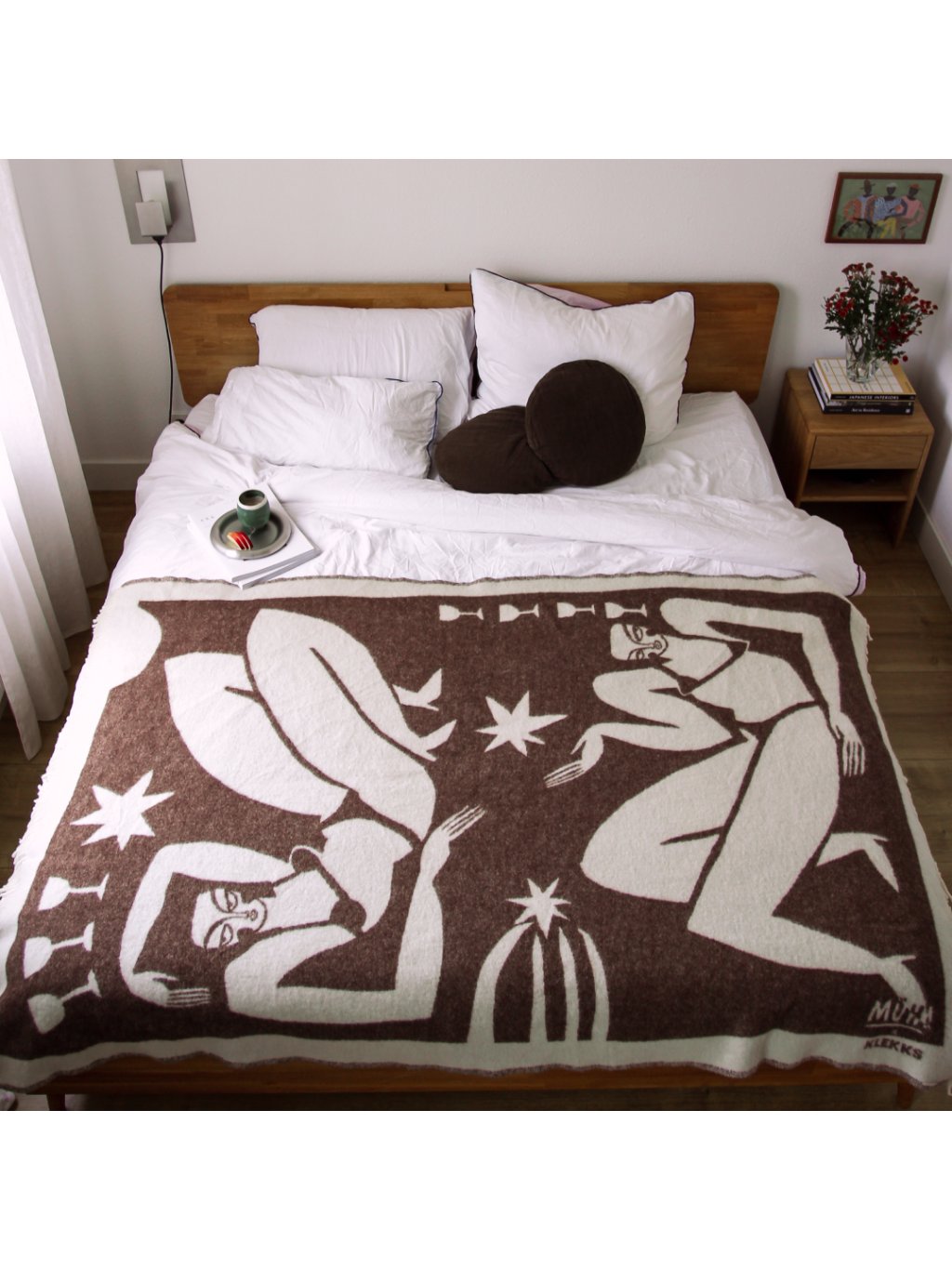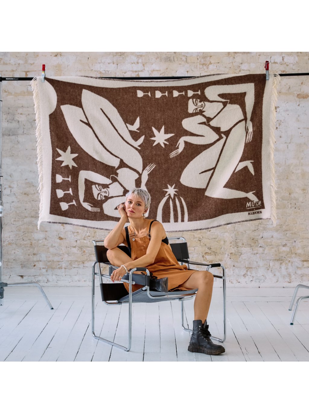 Umění nepatří jen na plátno. Limitovaná edice vlněné deky No. 31 zahřeje, ale taky vtiskne celému prostoru jedinečnou podobu. Deka je vyrobena z vlny v Evropské unii. Unikátní kolab s berlínskou umělkyní Hannah Muehi.