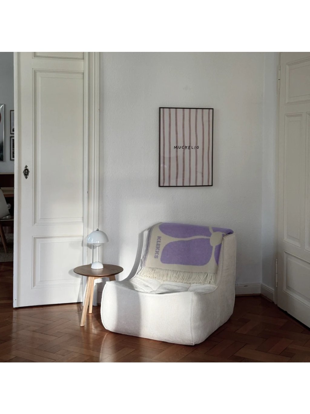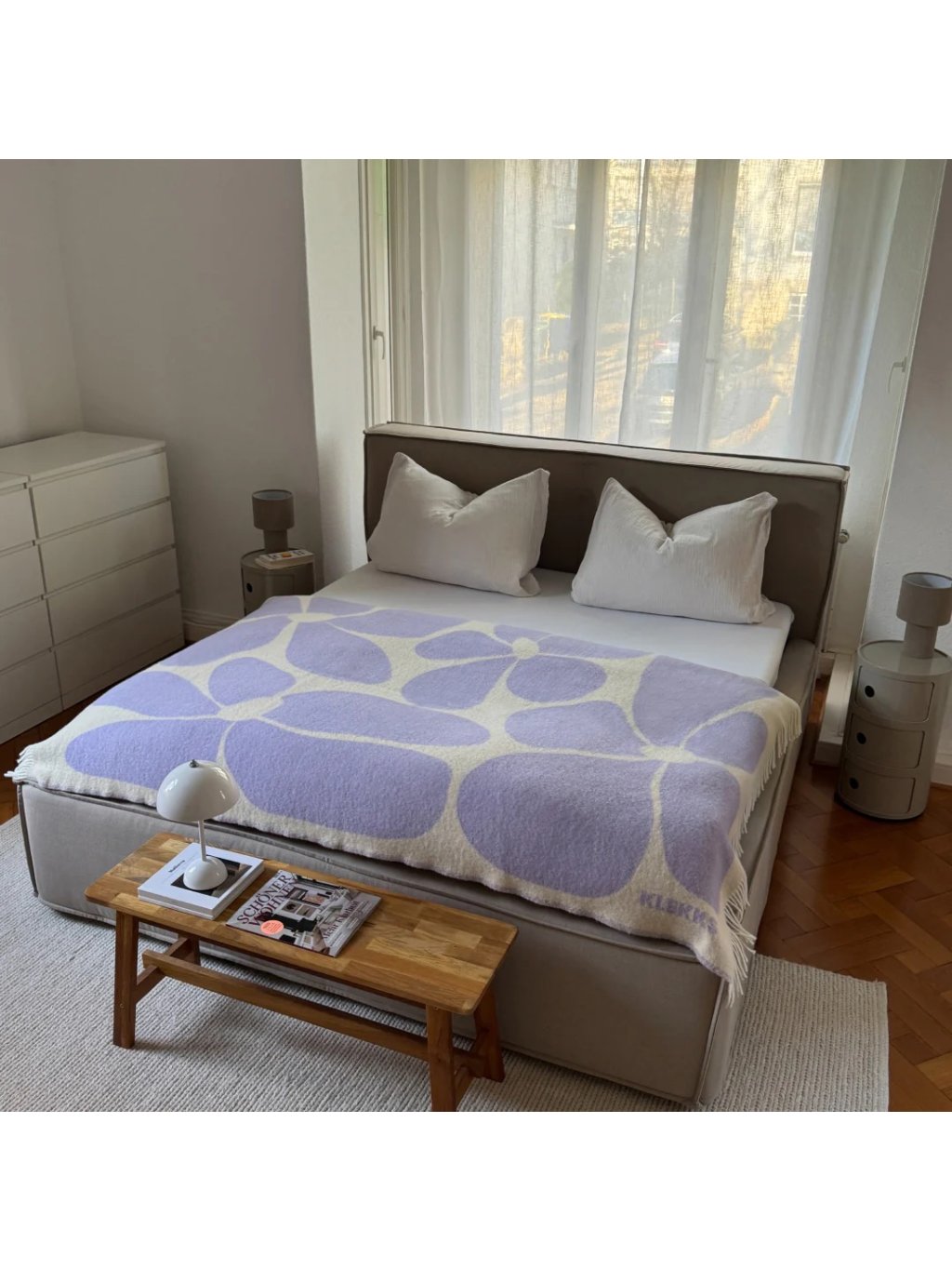 Umění nepatří jen na plátno. Limitovaná edice vlněné deky No. 32 zahřeje, ale taky vtiskne celému prostoru jedinečnou podobu. Deka je vyrobena z vlny v Evropské unii. Krásná kombinace krémové a lila.
