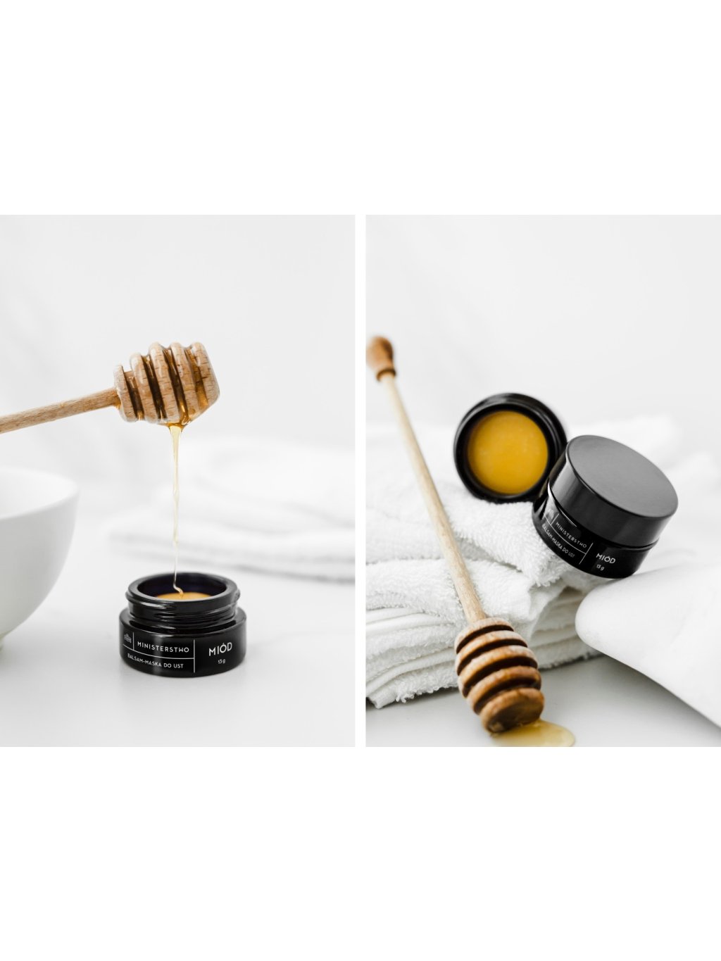 Ministerstwo medový balzám a maska na rty v jednom. Koncentrovaný, dlouhotrvající a silně revitalizující. Hydratuje, vyživuje, zjemňuje a chrání rty. Také přináší úlevu popraskaným rtům a je vhodný i na noční použití jako hloubková maska. Najdete v něm lanolin, včelí vosk, extrakt z medu a propolisu, panthenol, vitamín A, C a E, jojobový olej, bambucké máslo a skvalan z cukrové třtiny.
