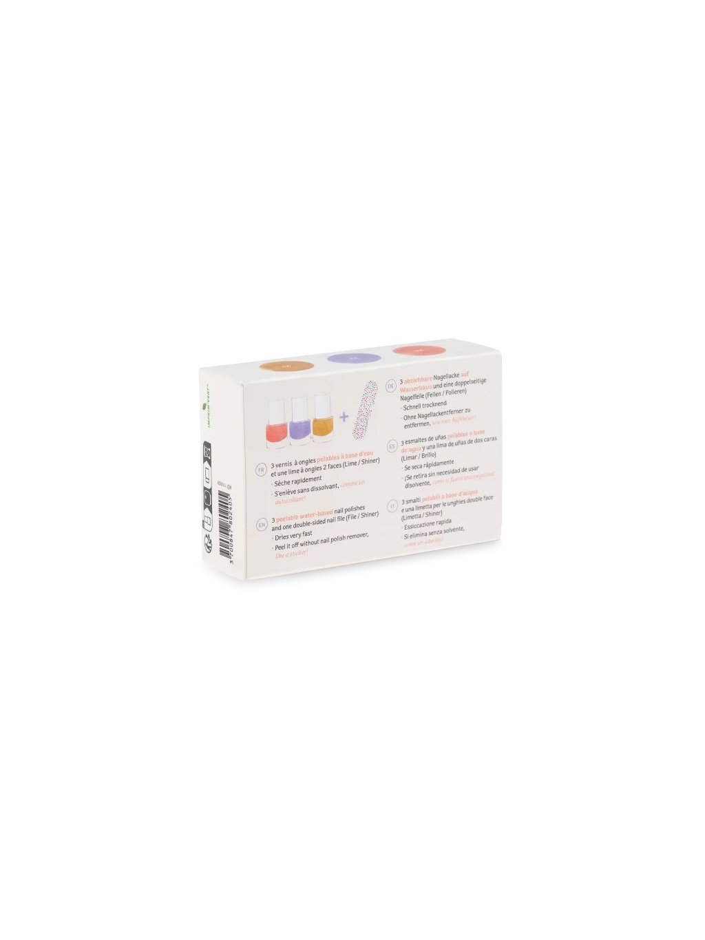 Namaki dětské laky na nehty 3 ks (korálová, levandulová a zlatá) + pilníček Sunset