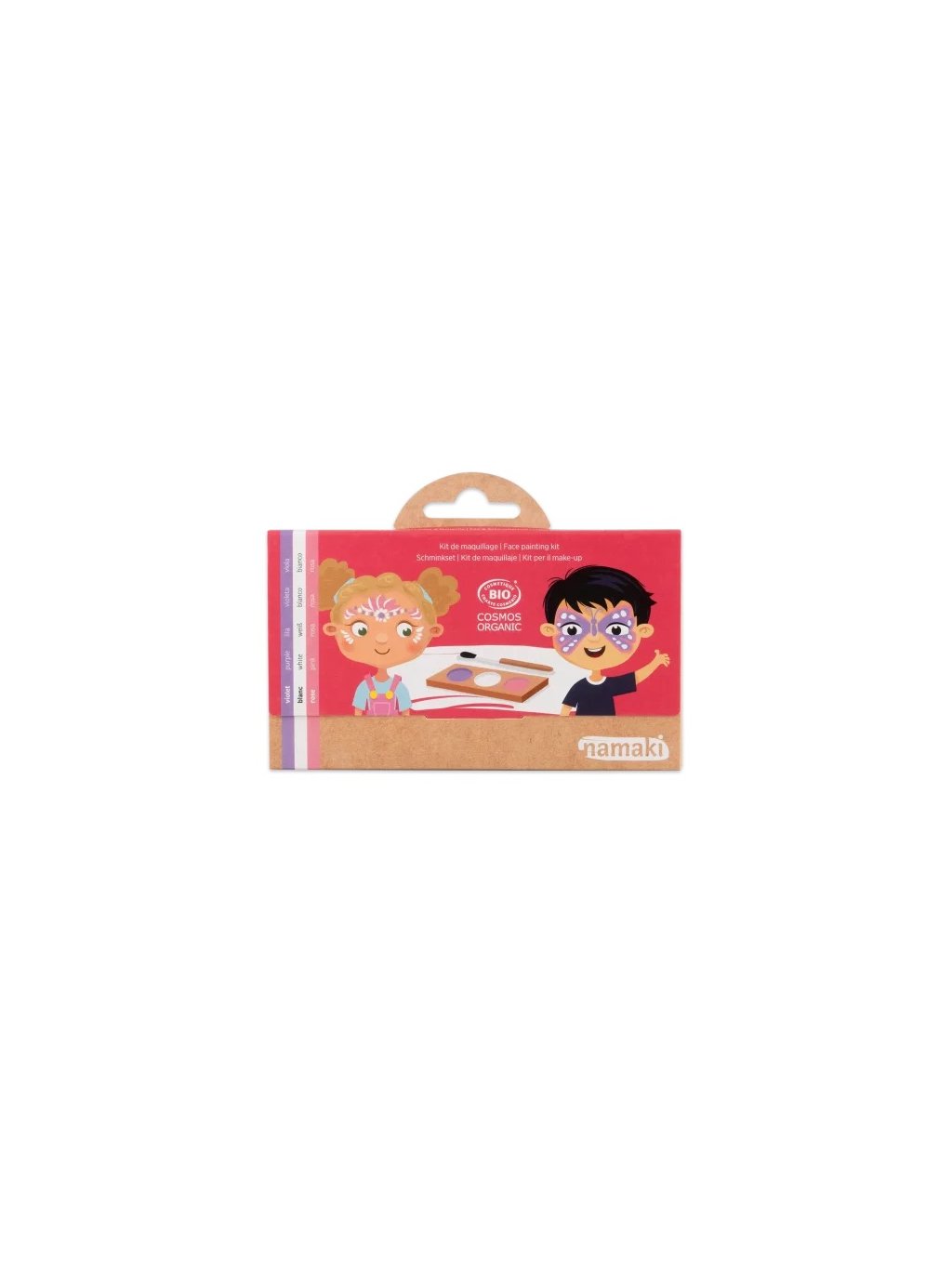 Namaki set 3 šetrných barev na obličej se štetcem v motivu víly či motýla. Snadné odstranění, certifikace COSMOS.