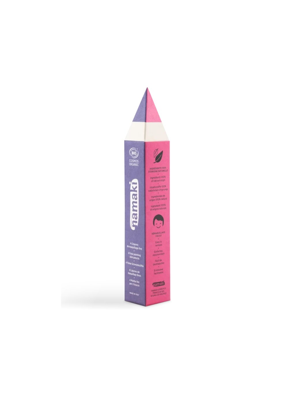 Značka Namaki přináší dětem radost i bezpečí v jednom. Všechny produkty jsou přírodní, hypoalergenní a dermatologicky testované, vyráběné s respektem k dětské pokožce i planetě. Od barevných líčidel po jemnou péči o rty a vlasy – Namaki proměňuje každodenní rutinu v zábavu plnou fantazie. Certifikace Cosmos Organic a ekologické balení zaručují, že každý úsměv je šetrný nejen k dětem, ale i k přírodě.