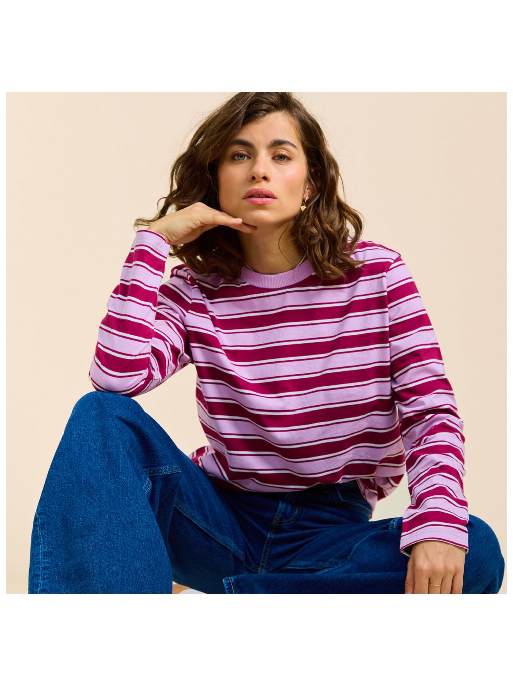 Popeia proužkované tričko s dlouhým rukávem Kindness z bio-bavlny fialová/růžová/bílá