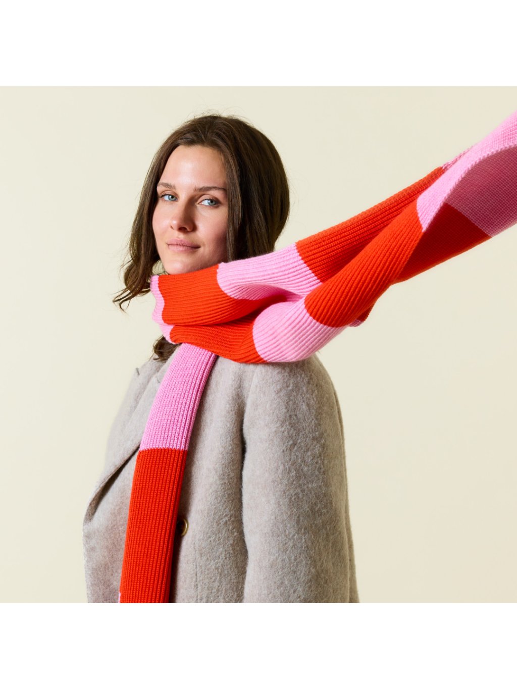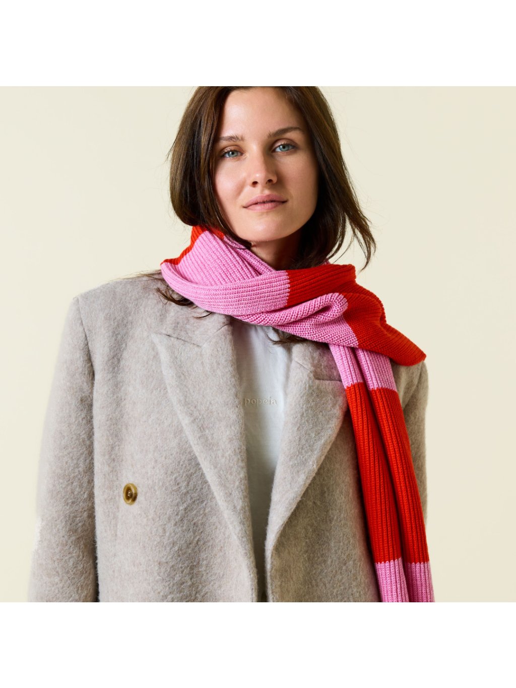 Popeia pruhovaná šála ze 100% merino vlny růžovo-červená