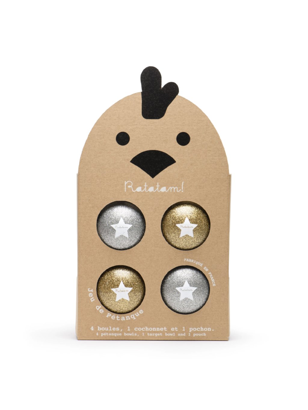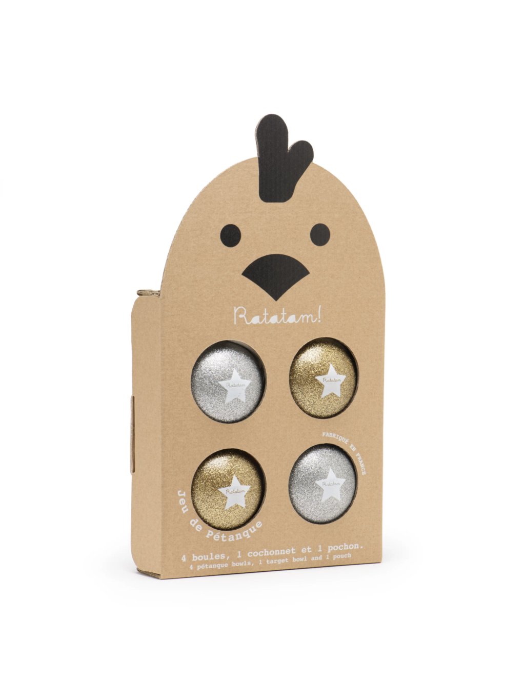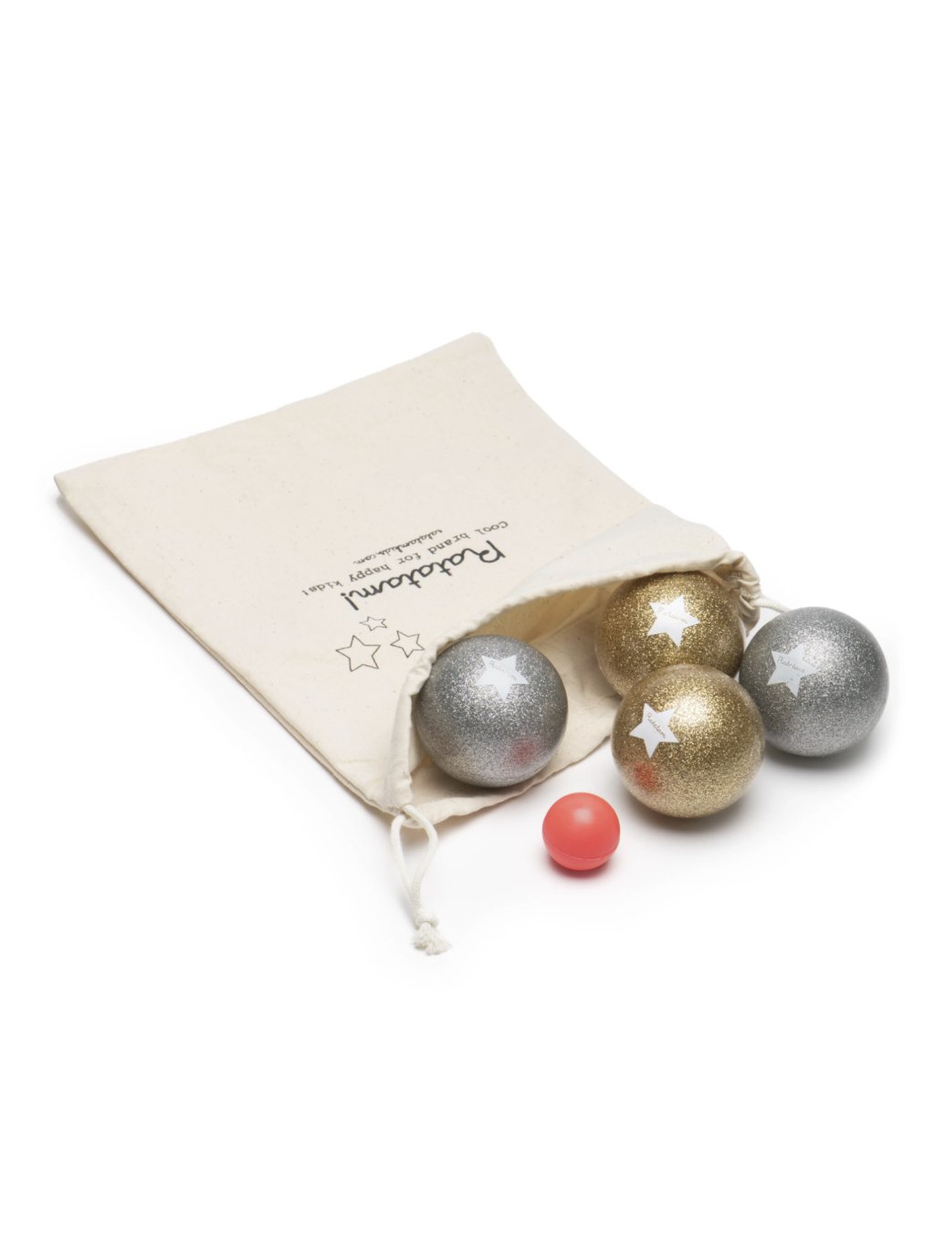Ratatam set třpytivých balonků na pétanque nebo jinou hru. Jak výrobce slibuje, balónky vynikají dlouhověkostí. V balení je také bavlněný pytlík, kam můžete celou hru uložit a pohodlně s ní cestovat. Balónky od značky Ratatam jsou vyráběny ručně ve Francii, každý set je tedy jedinečný. Krásný dárek, který neomrzí a lahodí oku dětí i rodičů.