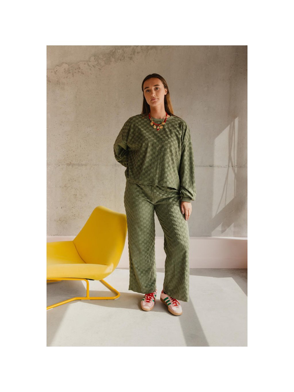 We Are Jolies kalhoty Damier z organic bavlny khaki